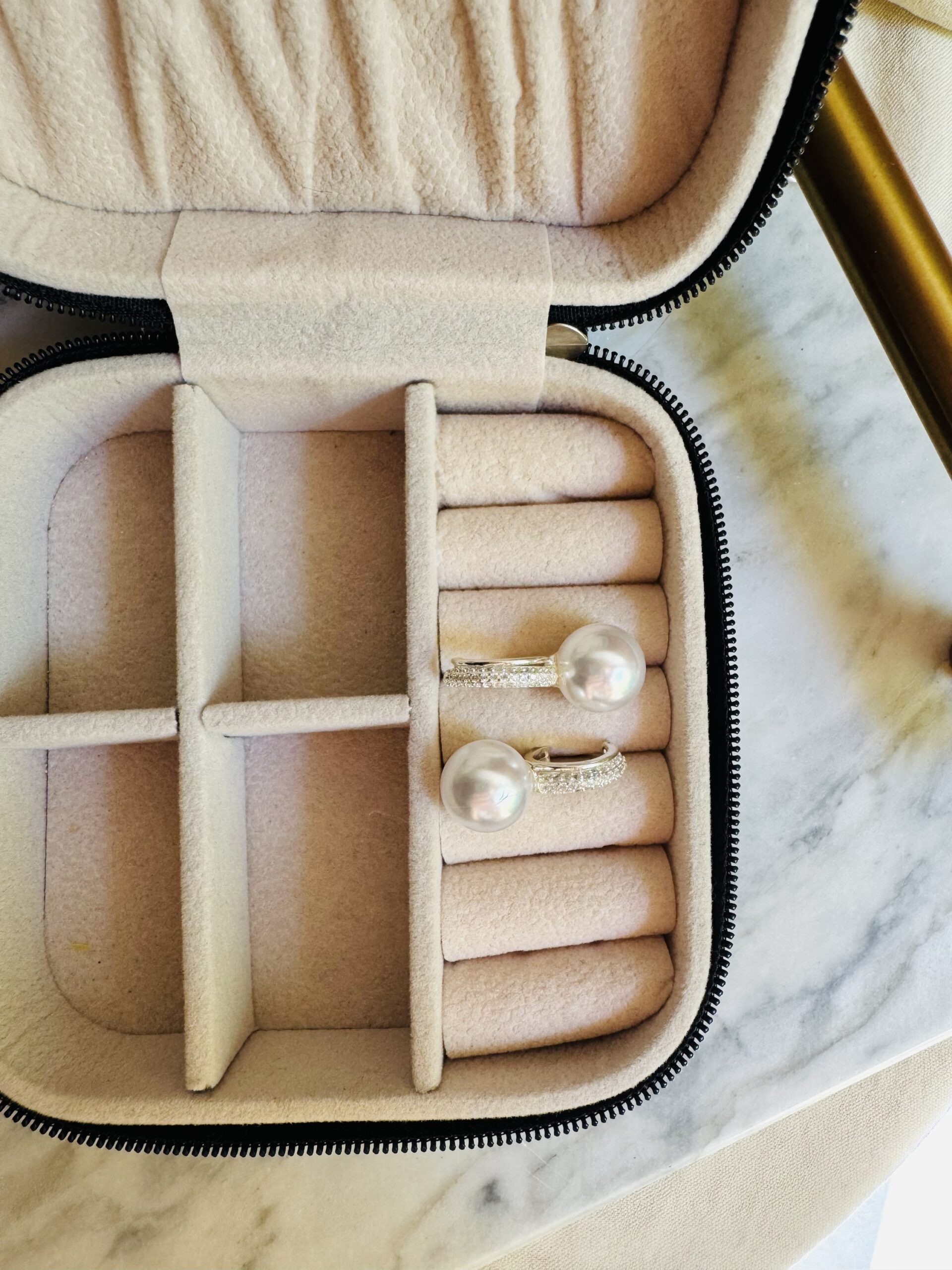 Aros tipo caravana con perlas y detalles en micro zirconias