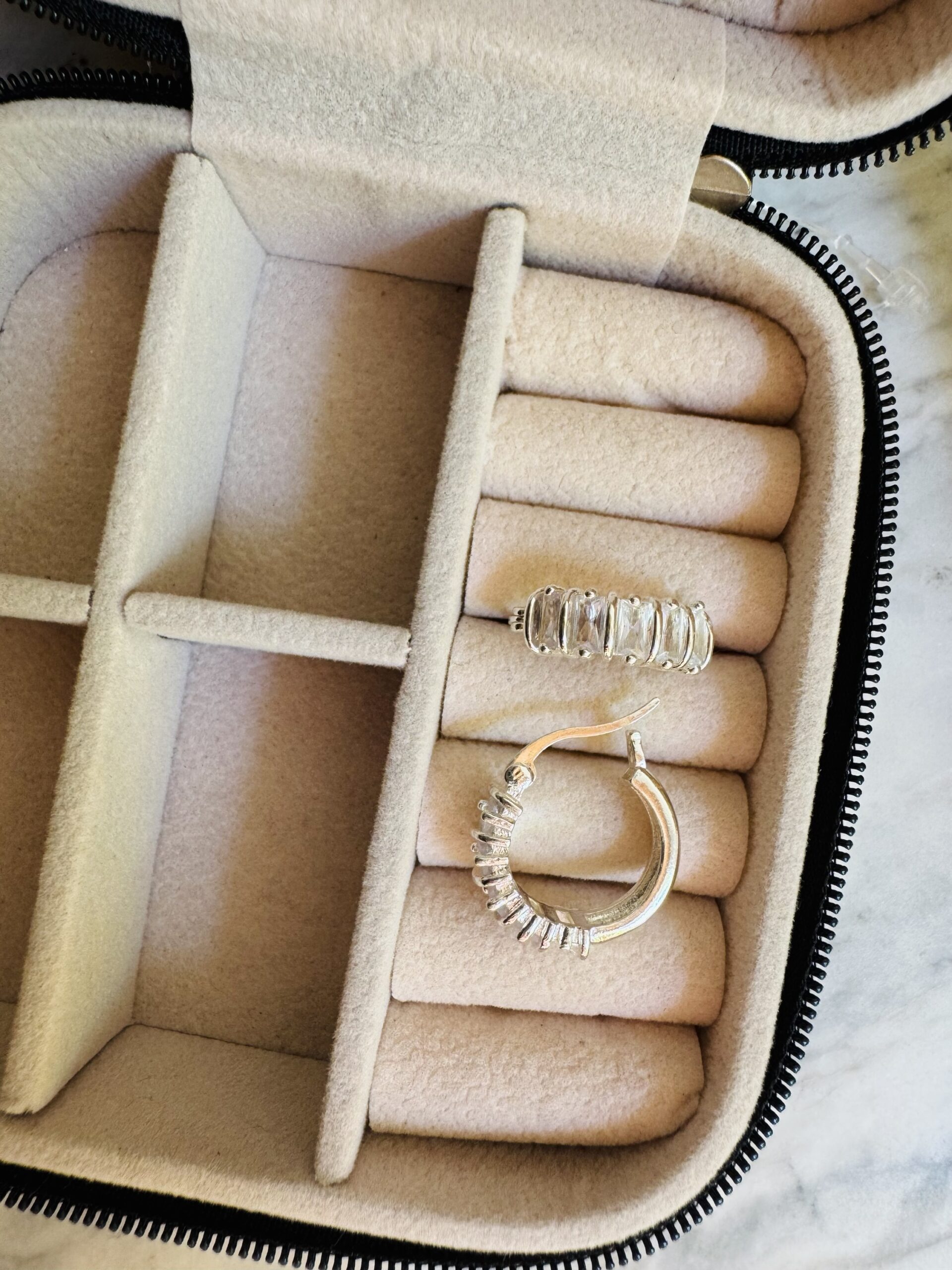 Aros de acero blanco con zirconias rectangulares.